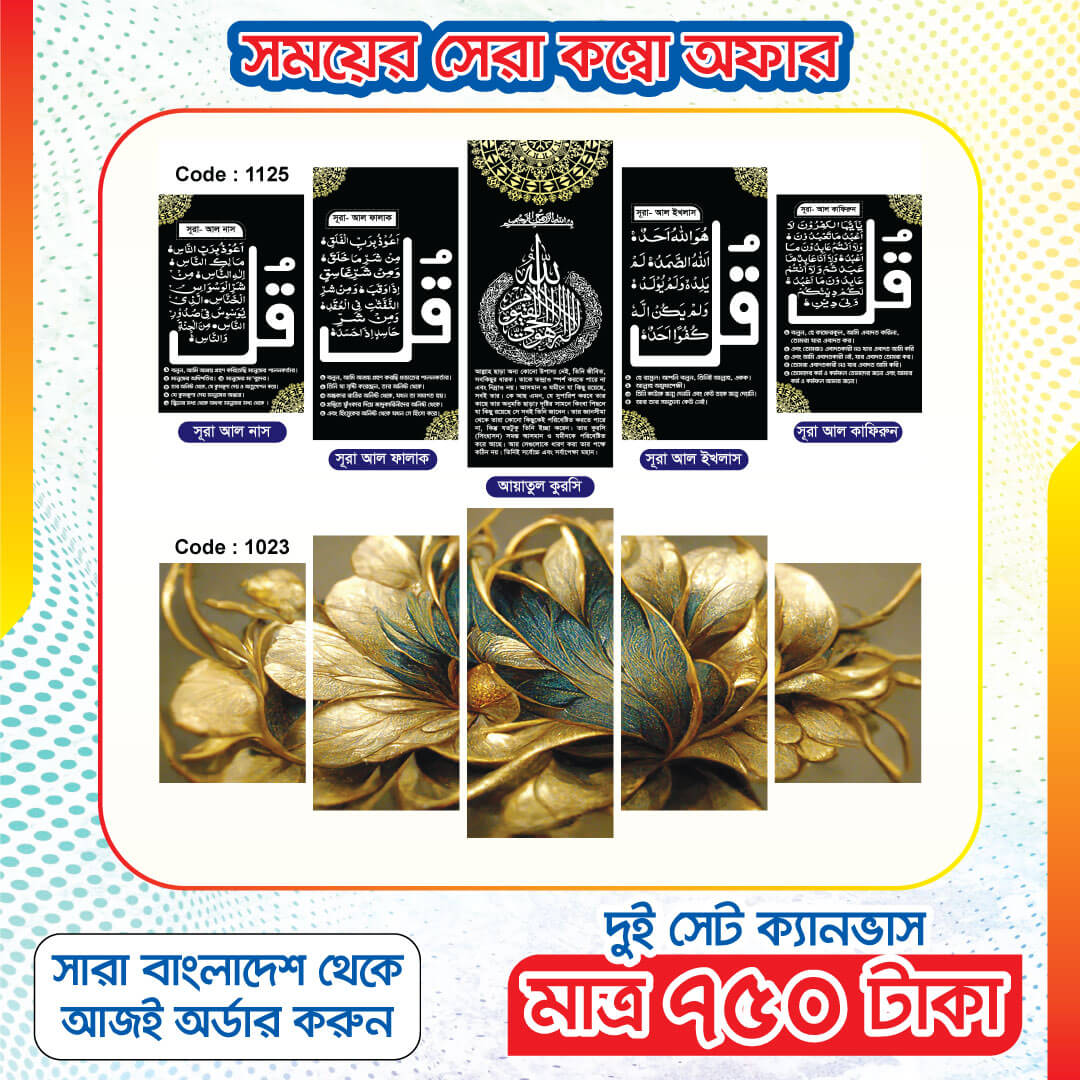 • ওয়াটার প্রুপ : লেমিনেশন করার কারনে আমাদের ক্যানভাস গুলো ১০০% ওয়াটার প্রুফ।