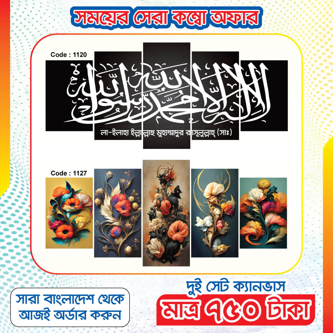 • ওয়াটার প্রুপ : লেমিনেশন করার কারনে আমাদের ক্যানভাস গুলো ১০০% ওয়াটার প্রুফ।